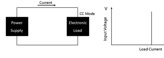 CV模式:定電壓模式(ConstanceVoltage Mode)直流電子負載輸入端口吸收的電流按所設定的電壓值而確定,此時電子負載將吸收足夠的電流直到負載電壓等于設定值為止,如下圖所示。