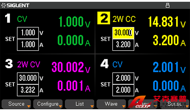鼎陽(yáng) SPD4306X支持 4W Sense 模式,能自動(dòng)補(bǔ)償正負(fù)輸出線的壓降,保證遠(yuǎn)端待測(cè)設(shè)備得到電壓等于電源設(shè)置電壓,在高精度的測(cè)試或者線纜很長(zhǎng)的場(chǎng)合可以發(fā)揮重要作用。