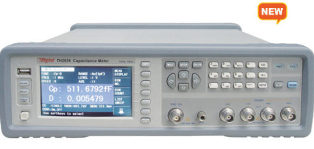 TH2638系列可以為陶瓷電容器生產測試提供高速、可靠的 測量。該儀器能夠精確測量從低值到高值的各類電容。在對同一 個電容器進行多次測量的結果一致性好,即使是很低的電容值也 可以很精確地測量出來。