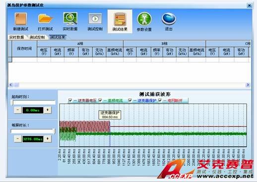 如圖所示,可自動(dòng)記錄波形進(jìn)行孤島保護(hù)時(shí)間的測(cè)量。