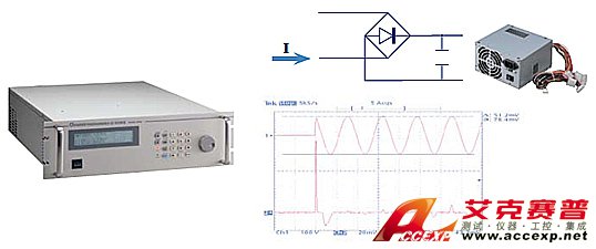 中茂 Chroma 61600 可編程交流電源可產生干凈的正弦波電壓,滿載的輸出交流失真度小于0.3%(50/60Hz,線性負載)。內建功率因素改善線路(PFC),使得它產生更高的效率和輸出更大的功率。本系列產品使用脈波寬度調變(PWM)技術,使得本系列交流電源供應器擁有提供6倍峰值電流的能力,使得中茂 Chroma 61600 可編程交流電源成為量測浪涌電流的最佳測試器。