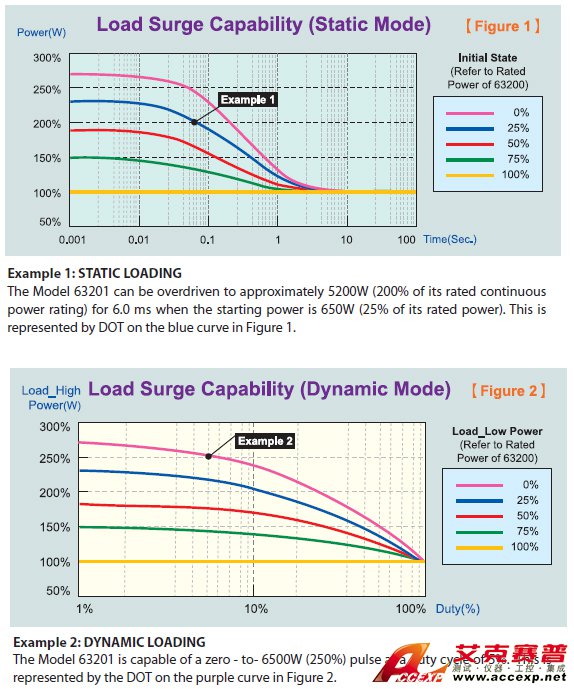 63200系列電子負(fù)載提供獨(dú)特的浪涌負(fù)載模擬能力,可使 63200系列電子負(fù)載功率瞬間過載2.7倍的額定功率。此特性 非常適合應(yīng)用在待測物進(jìn)行瞬間峰值功率的供給能力,電漿 電視(PDP)電源就是一種典型的應(yīng)用,其他應(yīng)用則例如電池的 3C放電、斷路器與無熔絲開關(guān)的過載(300%至1,000%)測試、 汽車引擎啟動時(shí)的負(fù)載模擬及直流馬達(dá)的啟動模擬等。