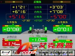 單獨的測量系統:(外傾角)功能畫面設計了,以車輪傾斜變化和顏色的區分不復雜,清晰及容易解說 | |