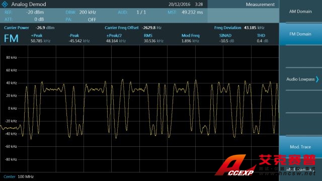 基本數(shù)字調(diào)制格式被用于多種應(yīng)用,例如近場(chǎng)通信。R&S FPC 支持 ASK 和 FSK 分析。數(shù)字調(diào)制顯示屏包括軌跡、眼圖、調(diào)制誤差和符號(hào)分析。此外,還提供低功耗藍(lán)牙 (Bluetooth LE) 和胎壓監(jiān)測(cè)系統(tǒng) (TPMS) 的專有配置預(yù)設(shè)。通過(guò)內(nèi)置揚(yáng)聲器或耳機(jī)插孔支持解調(diào)音頻。