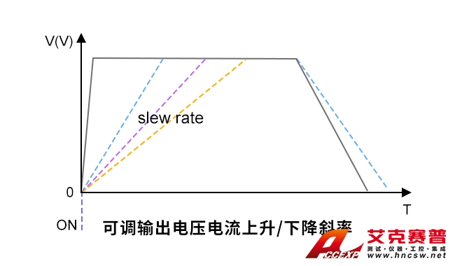 SPS6000X 電源支持自定義設置電壓/ 電流的上升/ 下降斜率,可以在電壓/電流變化過程中驗證待測物的性能。電壓的上升下降斜率范圍為0.001~4V/ms,電流的上升下降斜率范圍為0.001~0.5A/ms。此功能在特殊應用場合可有效避免浪涌電流對DUT的破壞,比如像電容器強電流吸收器件的測試。降低浪涌電流對被測負載的危害。