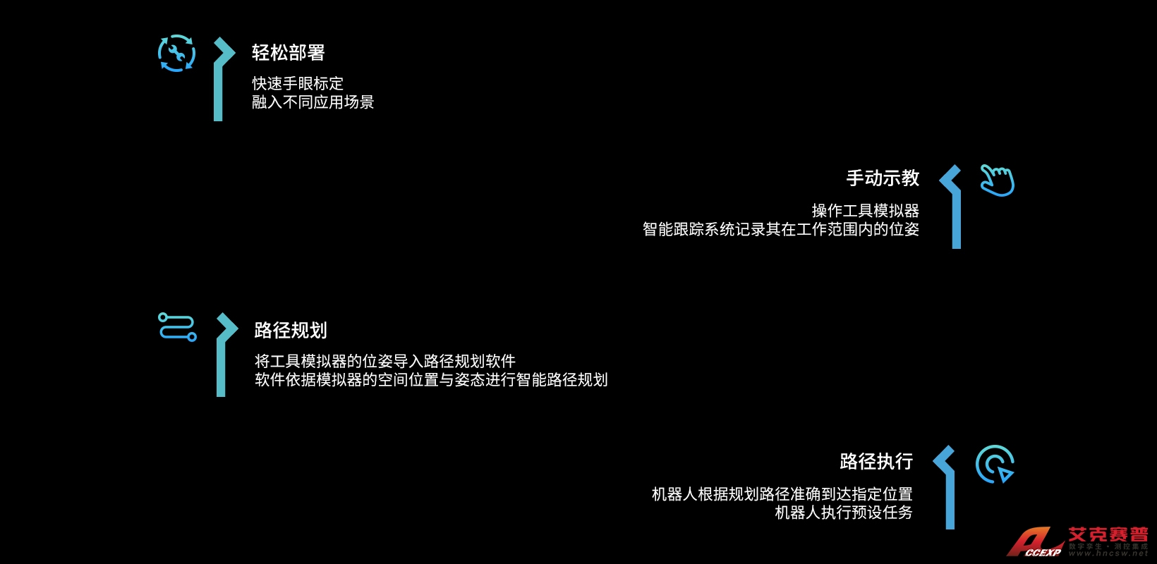 無論是專業(yè)工程師還是普通的技術(shù)人員,無需直接操作實(shí)際機(jī)器人,只需操作工具模擬器模擬實(shí)際工具外形,通過智能跟蹤系統(tǒng)獲取TCP位置和姿態(tài),即可進(jìn)行機(jī)器人路徑模擬,有效降低操作門檻。