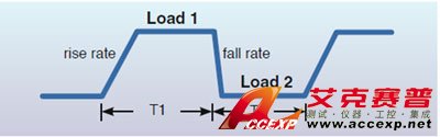 動態負載及控制 6310A提供高速的可編程動態負載特性模擬功能,下圖可說明6310A的可編程參數: