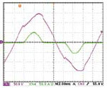 圖2為橋式整流的典型線路。在RLC模式下,使用者可透過設定RLC值,100%模擬實際待測物的行為。圖3 & 4分別是透過實際被動負載(電阻、電感、電容)與使用RLC負載模式量測。圖5則為定電流模式下所得到的波形。