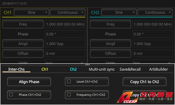 AFG31000 簡(jiǎn)化了這個(gè)過程,它在屏幕上有一個(gè)向?qū)Чぞ撸梢砸龑?dǎo)用戶完成電纜連接和設(shè)置配置,實(shí)現(xiàn)多臺(tái)發(fā)生器同步。