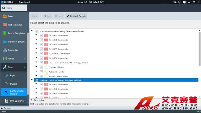 R&S?ELEKTRA 測試軟件控制完整的 EMC 測試系統(tǒng),自動進行被測設(shè)備 (EUT) 的騷擾 (EMI) 和抗擾度 (EMS) 認證測試。R&S?ELEKTRA 根據(jù)通用標(biāo)準(zhǔn)簡化測試系統(tǒng)配置和測試描述。它可加快執(zhí)行測試,并迅速生成全面的測試報告。